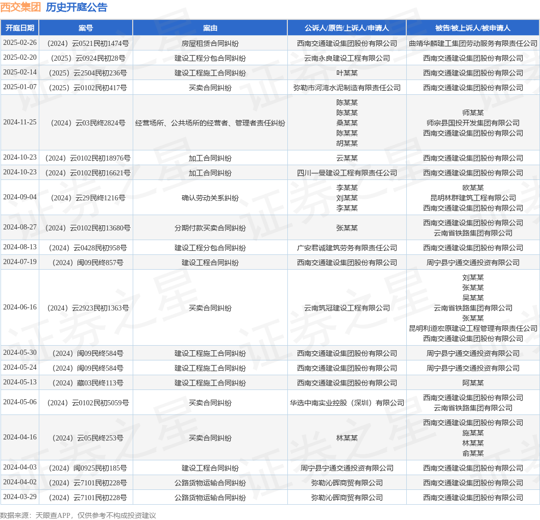 本站消息,根据天眼查APP显示,近日公布了一则西南交通建设集团股份有限公司作为原告/上诉人的开庭公告,详细内容如下: